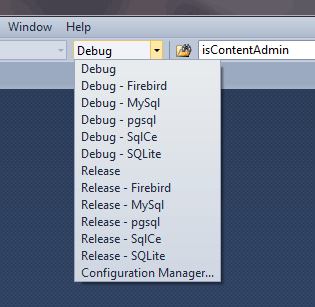 Also much nicer now for those who work with data layers other than MS SQL, you no longer have to change project references to use a different data layer. Now it is as easy as choosing the build configuration. I updated the old document "Setting the Data Layer in Visual Studio". I really love this since I'm always going back and forth working on different data layers.