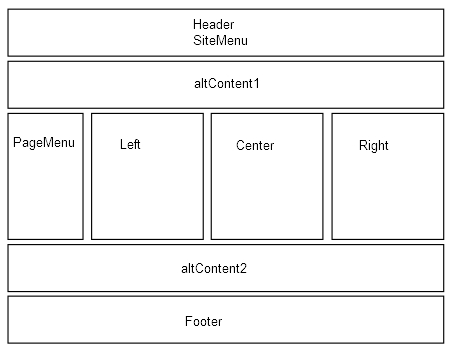 When you say markup do you mean to put this into the layout.master or into a html module.  If its into the layout.master how would I deal with pages that don't need the 3 columns (although I guess they would collapse if all content is inside the altcontent1 block.  If it were to be added to the html module how would the other modules be added into the correct areas.......
