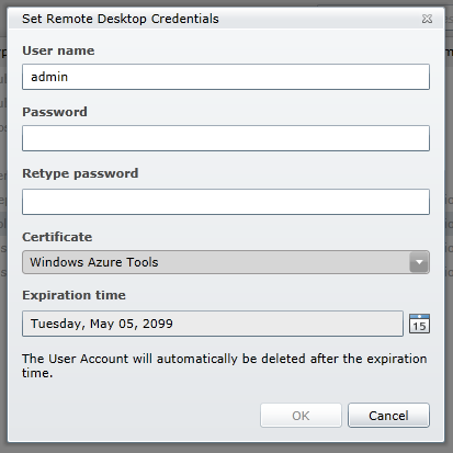Since uploaded a certificate that enables using remote desktop to connect with the web roles it is important to change the user and password.