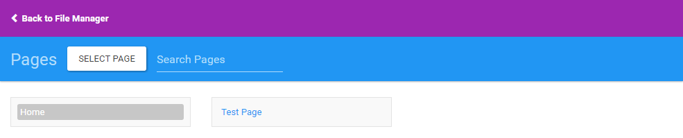 When picking a mojoPortal page is allowed, the File Manager will have a "Pick a Page" link at the top left of the editor, this will bring up all the pages your site has. To select a page, click on of the items and click the "Select Page" button.