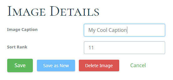 Following through with the same example from above, let's say you create an item as above, and enter "My Cool Caption" as the value of "Image Caption", like this: