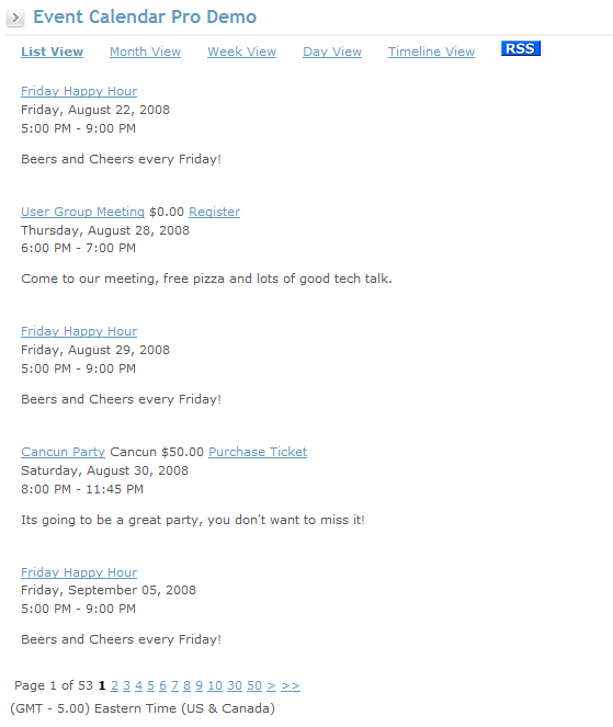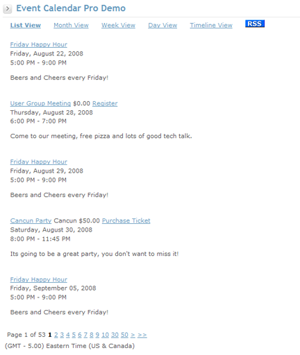 fixed bug where RSS feed had incorrect URLs if hosted in a virtual directory. Added better time zone handling to adjust correctly for Daylight savings when creating future events. Added config setting to allow ticket purchase/registration without registering/signing into the site. Added new recurrence type for every 14 days. Now supports will pay later registration without any commerce configuration. Added option to use the same sales begin date for recurring events. |
