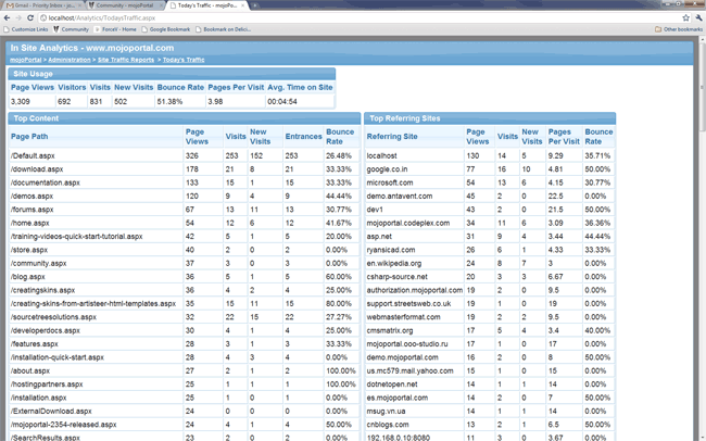 Requires a free Google Analytics account and requires that you are tracking traffic data using Google analytics. See the documentation about enabling google analytics tracking in mojoPortal.