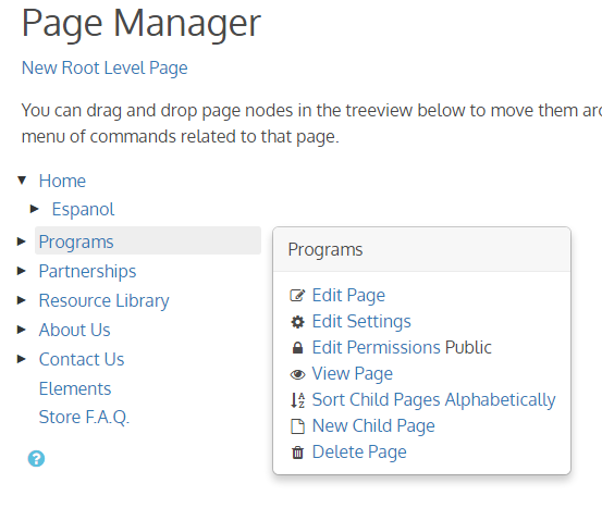 To move a page, click the Page List link in the admin drawer or go to Administration > Add/Edit Pages. The Page Manager will load and you can drag your pages around to put them in the right place.