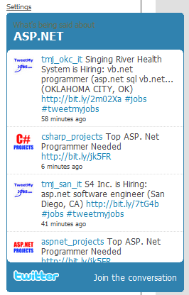 We now have built in widgets that can be used to show your tweets or twitter search results.