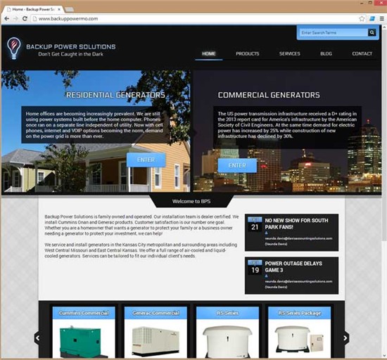 We have two sites to share this month. The first one Backup Power Solutions, was designed by our friends over at i7MEDIA.