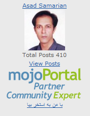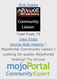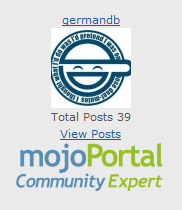 Gradually, it just seemed to happen that we reached a critical mass of active helpful community members and in the last few months I've been very happy because of the number of helpful people and the quality of help they have been providing. So, Joe Davis and I decided we should provide some recognition for these helpful people by giving them a badge for their forum signature that identifies them as a "Community Expert". While we still plan to someday build a point system into the forums to encourage helpful people, for now we know who is helping and we want to give them some recognition for their expertise in working with mojoPortal and their willingness to share their knowledge and help others.