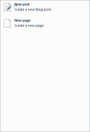 Once Open Live Writer is configured, mousing over the File > New Post menu item will show 2 options one for blog posts and one for pages.