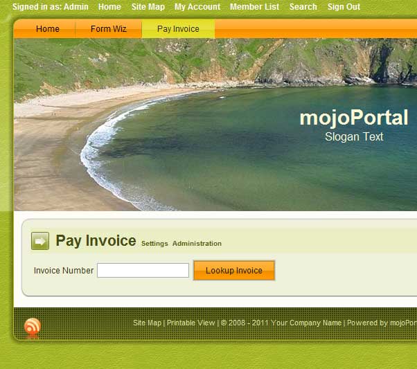 First, you need a web site running the free open-source mojoPortal software (version 2.4.0.9 or higher hosted with ASP.NET 4.5 or higher) using MS SQL 2005/2008/SqlAzure or MySql for the database (We may consider supporting other databases in the future). You should get your site working before you buy the Web Invoice Pro Feature. For information on setting up a mojoPortal site, see mojoPortal Installation. If you need an older version please contact us.